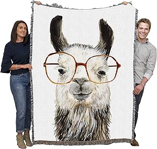 Pure Country Weavers ラマ メガネ付き ビクトリア・ボルジ ブランケットスロー コットン織 米国製 (72x54)