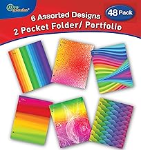 新しい世代 – レインボー – 2ポケットフォルダー/ポートフォリオ、48パック、レターサイズ、3穴パンチフォルダ、頑丈UV光沢ラミネート – Assorted 6 Designsフォルダ、Back to School Supplies 48 PACK