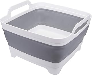 Suwimut 折りたたみ式 洗面台 排水溝とハンドル付き 容量9リットル 折りたたみ式シンクタブ ポータブルディッシュパン 食器 RVシンク キャンプ ホーム グレー