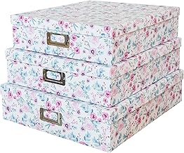 Soul & Lane 装飾ストレージ段ボール箱 蓋つき | 爽やかな花 - 3個セット | 整理用フローラルペーパーボード ネストボックス