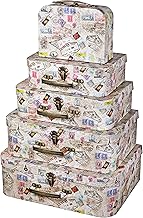 Soul & Lane ハンドル付き装飾段ボールスーツケースボックス - 5個セット | ワールドトラベラーテーマ | 蓋付き段ボール箱 整理用