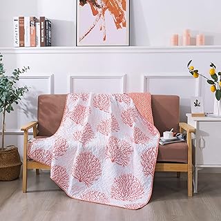 Soul & Lane コーラルオーシャンビーチフロントキルトスロー 50インチ x 60インチ コーラルオーシャンビーチフロントキルトスロー