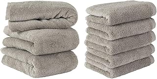 【Amazon.co.jp限定】タオル研究所 [ボリュームリッチ] #003 バスタオル/フェイスタオル ライトグレー 《3枚+5枚セット》 ふかふか ホテル仕様 高速吸水 毛羽レス 耐久性 人気 【選べる5色】 Japan Technology
