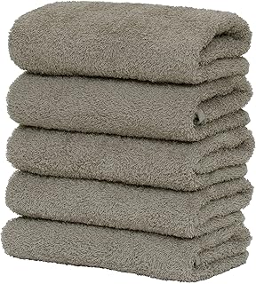 【Amazon.co.jp限定】タオル研究所 [軽さの理由] #006 フェイスタオル ウォームグレー ほうじ茶色 5枚セット 高速吸水 速乾 耐久性 薄手【選べる7色】 Japan Technology