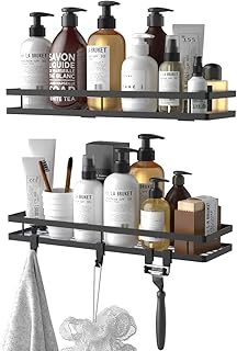 浴室用ラック 強力粘着固定 お風呂の壁に ステンレス シャワーラック 風呂場 洗面所 台所 多機能 収納壁掛け棚 穴あけ不要 2段式(ブラック)