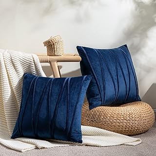 Top Finel 装飾用クッションカバー 手作り カウチやベッドに 柔らかい粒子ストライプ ベルベット無地クッションカバー 2枚セット 20'x20'