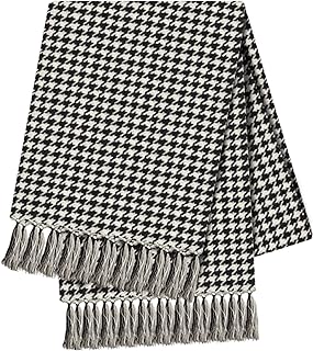 SARO LIFESTYLE 千鳥格子 フリンジスロー 50 x 60インチ 50 x 60インチ ブラック