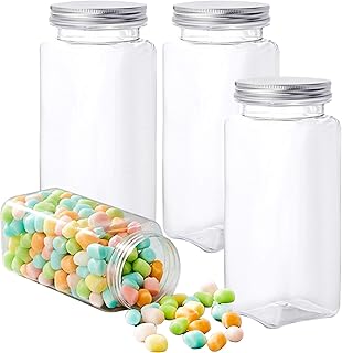 FEOOWV 透明プラスチックジャーコンテナ シルバーメタルの蓋付き 18.6オンス/550ml 正方形ボトル キッチンドライグッズ収納に最適