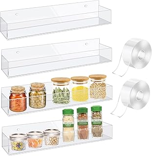 VAEHOLD アクリルスパイスラック 壁マウントオーガナイザー バスルーム用 クリアウォールスパイスラック キッチンキャビネットドア用 4個パック 11 4/5インチ棚