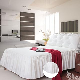 Powanfity ベッドスカート シングル アンティーク風 簡単フィット ベッドスプレッド ベッドカバー シーツカバー おしゃれ フリルデザイン 伸縮 無地 洗える 高通気性 純天然 高質感 雰囲気アップ 四季適用 (ホワイト, シングル90cmx190x38cm)