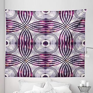 Ambesonne ヴィンテージタペストリー キングサイズ ヴィンテージスタイル 幾何学模様オーナメント ストライプとサークル 鮮やかなカラープリント 壁掛けベッドスプレッド ベッドカバー 壁装飾 104インチ x 88インチ ラベンダープラム