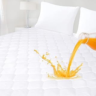 joluzzy キルト防水マットレスパッド – 100%コットン表面 – 通気性 – ノイズレス – ビニールフリー – マットレスプロテクター フルXLサイズ