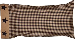 VHC Brands Teton Star King 枕カバー アップリケスター付き 21x40インチ カントリー寝具アクセサリー ネイビーとタン