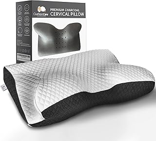 竹炭頸部ネックピロー 痛みを緩和 睡眠 – 通気性のある低反発素材 – 整形外科的輪郭枕 横向き、背中、うつ伏せ寝の方に – 人間工学に基づく首と肩サポート枕