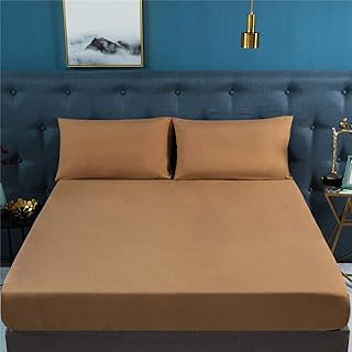 SUNYUM ボックスシーツマットレスカバー ベッドシーツ ダブル 3点セットセミダブル 寝具カバーセット ボックスシーツ 枕カバー 柔らかな触感 吸汗 速乾 マチ部分約30cm 着脱簡単 通気性 丸洗い可能 快眠 (ブラウン, セミダブル・3点セット)
