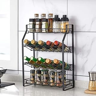 調味料ラック 調味料入れ スパイスラック キッチンラック 調味料収納 組み立てが簡単 調味料棚 滑り止め 防汚 防錆 防油 大容量 台所収納ラック (ブラック 三段式)